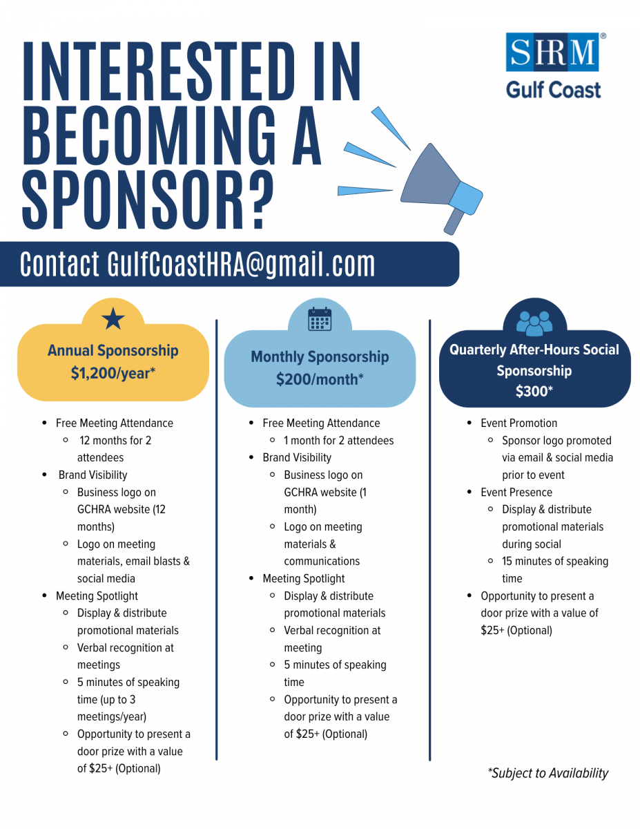 CLICK HERE to be a SHRM Gulf Coast Sponsor